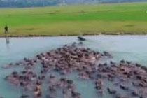 實拍南非大象拖家?guī)Э诿妥酚斡[車