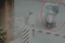 雄鹿誤闖民居 頂著紫色“假發(fā)”逃跑