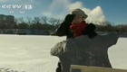 呆萌大熊貓滑雪取樂