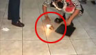 實(shí)拍女子街頭倒煤球引發(fā)窨井爆燃被炸飛