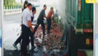 運(yùn)西瓜貨車(chē)輪胎過(guò)熱自燃 眾人砸瓜救火