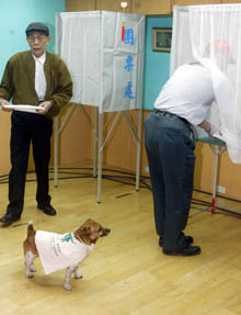 投票花絮:主人投票愛犬相隨