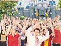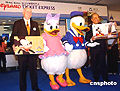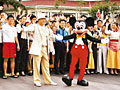 香港迪斯尼樂(lè)園中西合璧,卡通故事里中國(guó)卡通角色和西方卡通角色俱有,演藝人員中,外籍和中國(guó)香港籍人士合作共勉