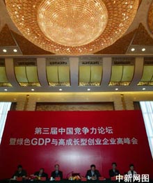 由中國新聞社主辦的第三屆中國競爭力論壇暨綠色GDP與高成長型企業(yè)高峰論壇10日在北京人民大會堂開幕。本次論壇的主題是“倡導‘十一五’綠色成長理念,打造高成長型企業(yè)”。