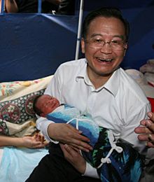 溫家寶看望地震災區(qū)群眾 號召"挺起不屈的脊梁"