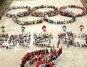 四川華鎣1500人 組成巨型奧運(yùn)圖案 |