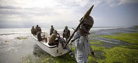 | ·索馬里海盜猖獗的背后 ·多國出擊為何難治索馬里海盜繼續(xù)瘋狂作案? ·探秘索馬里海盜巢穴:劫船一條龍 帶動規(guī)模經(jīng)濟 ·索馬里海盜世界的真實生活:高額贖金奢侈生活 ·襲擊頻率越來越高 索馬里海盜為何禁不勝禁? ·深度解析:索馬里海盜猖獗有因 斬草除根命門何在 |