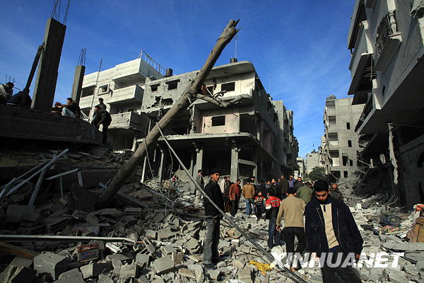 第二十天 以軍15日凌晨攻進加沙城南部,隨后向城中心推進。以軍F16戰(zhàn)機當晚炸毀加沙城北部一棟三層住宅樓,炸死包括哈馬斯當局內(nèi)政部長在內(nèi)的三名高級領導人。另外,聯(lián)合國近東巴勒斯坦難民救濟和工程處辦公地點當天遭到以軍炮擊,加沙城南部的巴勒斯坦紅新月會辦公地點也遭襲。目前以軍行動已造成至少1095人死亡,超過5000人受傷。哈馬斯稱如果以色列在1周內(nèi)撤軍并立即重開加沙口岸,他們愿意實現(xiàn)一年甚至更長的;。