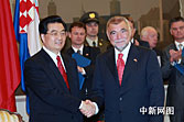 圖:胡錦濤與克羅地亞總統(tǒng)梅西奇舉行會談