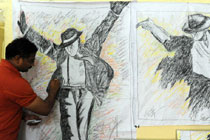 圖:印度畫家創(chuàng)作畫像紀(jì)念邁克爾·杰克遜