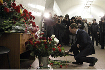 圖:俄總統(tǒng)為地鐵爆炸遇難者獻花