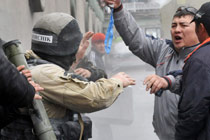 吉爾吉斯斯坦大規(guī)模騷亂 示威者與警方?jīng)_突