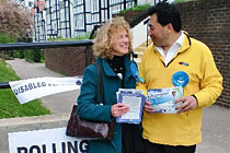 英國國會(huì)華裔議員候選人李澤文在大選日拉票