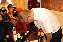 圖:河南航空公司監(jiān)事會主席鞠躬致歉
