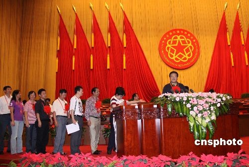 胡錦濤溫家寶向受表彰的先進(jìn)集體和個(gè)人代表頒獎(jiǎng)