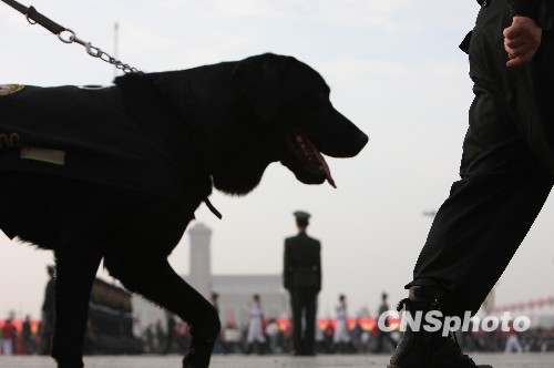圖:國慶慶典前搜爆犬在行動