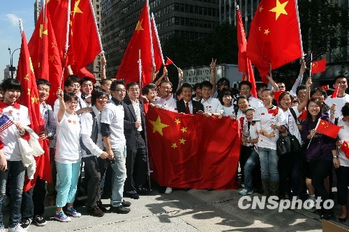 圖:旅美中國學(xué)生紐約街頭歡迎胡錦濤訪美