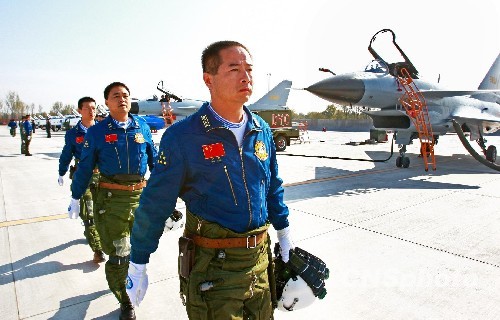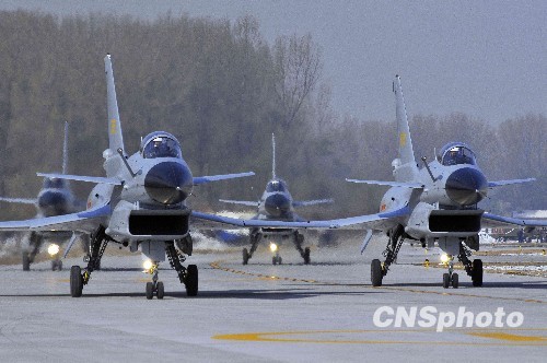 圖:中國(guó)空軍飛行表演隊(duì)準(zhǔn)備升空