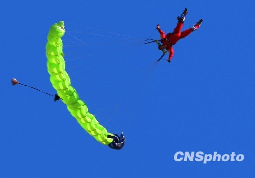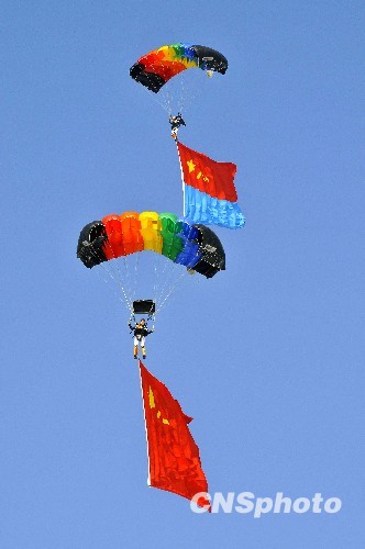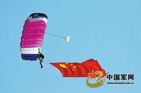 圖:空降兵高空傘降獻(xiàn)禮空軍成立60周年