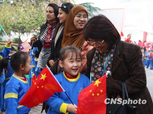 圖:各國(guó)空軍代表團(tuán)隨行夫人參觀藍(lán)天幼兒園(2)