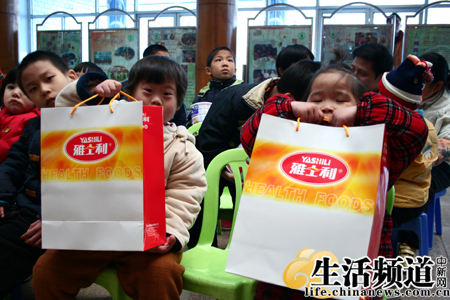福利院兒童拿著贈品