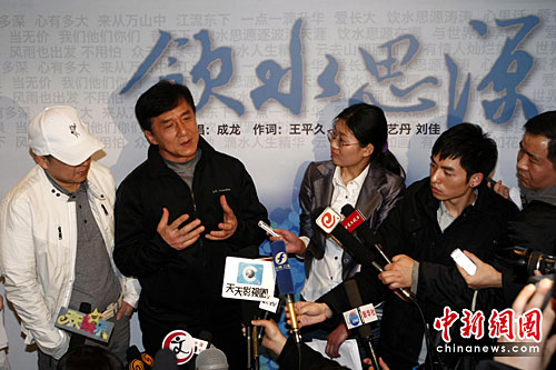 圖:成龍錄制西南抗旱救災(zāi)之歌《飲水思源》