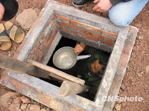 圖:四川攀枝花旱區(qū)村民尋找新水源打水
