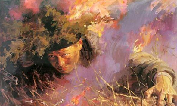 第二天11點(diǎn)鐘的時(shí)候,敵人胡亂發(fā)出一顆燃燒彈,忽然落邱少云身旁,燒著了他身上的茅草.這時(shí)候,他要站起來,是完全可以把火撲滅的.邱少云想起,出發(fā)前,首長(zhǎng)交代要嚴(yán)格遵守埋伏紀(jì)律.邱少云更加知道,要是他爬起來,埋伏在這里的幾十位戰(zhàn)友,就會(huì)被敵人發(fā)覺,就有可能被敵人消滅,這樣就破壞了原定的戰(zhàn)斗計(jì)劃.他決定躺著不動(dòng).我軍陣地上的指揮員,看到埋伏地點(diǎn)起火,連忙命令向敵人開炮,擾亂敵人的注意力.這時(shí)候,邱少云還是沒有爬起來?yè)錅缱约荷砩系幕?烈火繼續(xù)燃燒著他的身體.邱少云咬著牙,小聲向靠近的戰(zhàn)友李士虎說:"勝利是我們的,但是我不能完成爆破任務(wù)了,交給你去完成吧!"說完,他把被烈火燒著的身體更緊地貼到地上,一直到犧牲,也沒動(dòng)一下.李士虎急得咬破了嘴唇,眼睛里像要冒火.但是,他和邱少云一樣,和埋伏在那里的所有戰(zhàn)友一樣,想到了整體,想到了整個(gè)戰(zhàn)斗的勝利,眼看著他親愛的戰(zhàn)友壯烈犧牲;忍受著內(nèi)心的仇恨,焦急地等待著戰(zhàn)斗的信號(hào).