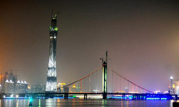 廣州電視觀光塔(又稱廣州塔、廣州新電視塔),建于廣州市海珠區(qū)赤崗塔附近地面,距離珠江南岸125米,與海心沙島及廣州新電視塔夜景珠江新城隔江相望。是一座以觀光旅游為主,具有廣播電視發(fā)射、文化娛樂和城市窗口功能的大型城市基礎(chǔ)設(shè)施,將為2010年在廣州召開的第十六屆亞洲運動會提供轉(zhuǎn)播服務(wù)。該塔仍然在建,由上海建工集團負責(zé)施工,預(yù)計2009年9月竣工。竣工后的廣州電視觀光塔整體高度達到610米,將取代加拿大的西恩塔成為世界第一高塔,也將成為廣州的新地標。其中塔身主體454米,天線桅桿156米。