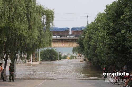 圖:綿陽鐵路橋嚴(yán)陣以待唐家山堰塞湖泄流