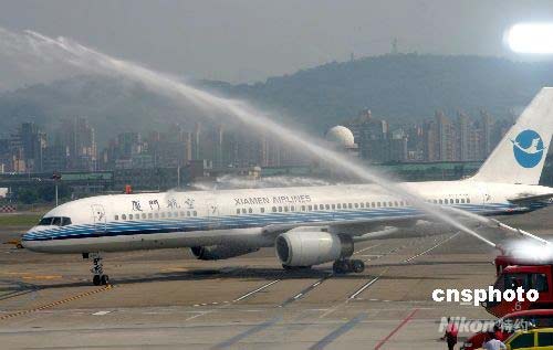 圖:廈航機組直航臺北凱旋歸來