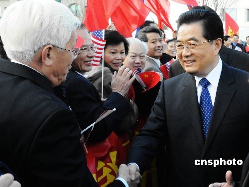 華盛頓華僑華人留學(xué)生迎接胡錦濤主席