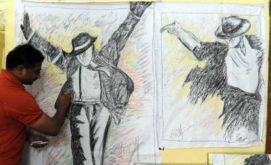 圖:印度畫家創(chuàng)作畫像紀(jì)念邁克爾·杰克遜