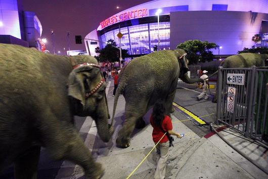杰克遜公眾追思會(huì):馬戲團(tuán)大象抵達(dá)現(xiàn)場(chǎng)(2)