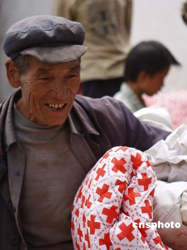 圖:云南姚安地震災(zāi)區(qū)災(zāi)民領(lǐng)取救災(zāi)物資