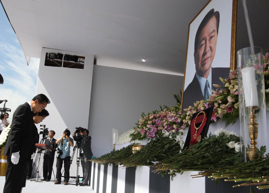 圖:韓國(guó)總統(tǒng)李明博吊唁金大中