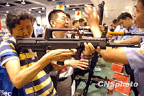 圖:杭州市民展會上體驗警用槍支