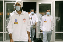 圖:錢學森夫人蔣英在工作人員攙扶下走出靈堂