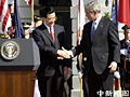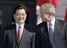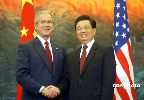 布什訪華,胡錦濤與布什會談并共同會見記者。