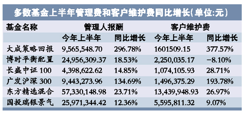 基金在銷售渠道上的艱難處境在半年報(bào)中得到印證。據(jù)天相統(tǒng)計(jì),已公布半年報(bào)的18家基金公司上半年共計(jì)支出客戶管理費(fèi)高達(dá)7.04億元,比去年同期增長(zhǎng)13.28%。