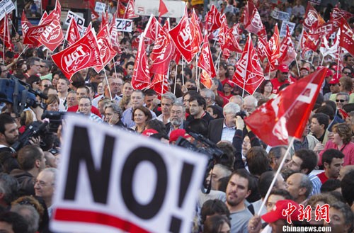 9月29日,歐洲工會(huì)組織在布魯塞爾舉行大規(guī)模示威游行,反對(duì)增加稅收和削減公共開支的經(jīng)濟(jì)緊縮措施,要求優(yōu)先保障勞動(dòng)者的工作崗位,減少失業(yè)率。包括西班牙、愛爾蘭、希臘、意大利、法國等多個(gè)歐洲國家當(dāng)天也爆發(fā)了大規(guī)模的游行示威活動(dòng)。