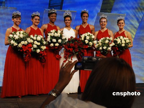 美國第九十屆玫瑰皇后和公主的加冕儀式,十月二十五日在巴沙迪那玫瑰宮舉行。高中十七歲少女吉布斯喜戴由鉆石珍珠裝飾的價值十萬美元皇冠,六名少女各頭戴價值四萬五千美元的公主冠。她們將在2008年元旦第一百一十九屆玫瑰花車游行時,喜迎北京奧運花車。美國一百多年來的玫瑰公主選拔超脫于選美活動,在于注重少女的社區(qū)活動和學(xué)業(yè)成績以及演講能力,推崇標(biāo)準(zhǔn)的清純“鄰家女孩”。中新社發(fā) 賈國榮 攝
