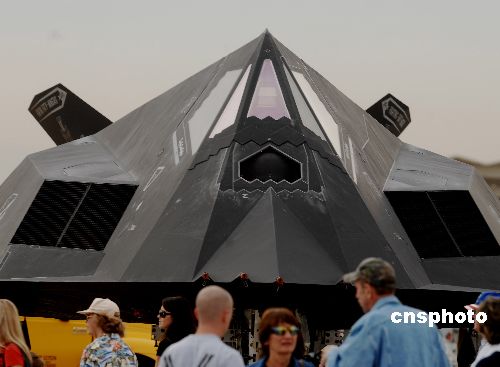 美國(guó)為紀(jì)念六十年前成立空軍,十一月在內(nèi)華達(dá)州的內(nèi)利斯空軍基地舉辦大規(guī)模飛機(jī)展示,民眾前來(lái)觀(guān)看世界上第一種可正式作戰(zhàn)的隱身戰(zhàn)斗機(jī)F-117A“夜鷹”,它專(zhuān)門(mén)用于夜間攻擊。中新社發(fā) 賈國(guó)榮 攝