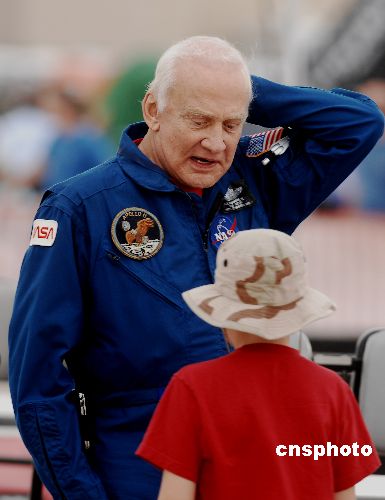 美國第二位登上月球的宇航員奧爾德林十一月在內華達州的內利斯基地出席紀念空軍成立六十年盛會。中新社發(fā) 賈國榮 攝