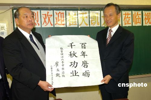 11月19日上午,上任伊始的中國(guó)駐日大使崔天凱專(zhuān)程來(lái)到日本橫濱山手中華學(xué)校,看望這座具有百年歷史的僑校師生,中國(guó)駐日使館公使孔鉉佑、中國(guó)駐日使館總領(lǐng)事于淑媛陪同。崔天凱大使一行受到該校師生的熱烈歡迎。中新社發(fā) 滕劍峰 攝