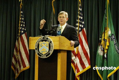 美國財(cái)政部12月7日舉行記者會,該部中國事務(wù)特使霍爾默(Alan Holmer)在記者會上透露,下周美國財(cái)長保爾森將率團(tuán)前往北京出席第三次中美戰(zhàn)略經(jīng)濟(jì)對話,美方代表團(tuán)成員包括商務(wù)部長古鐵雷斯、衛(wèi)生與公共服務(wù)部長萊維特、貿(mào)易代表施瓦布、環(huán)保署長約翰遜、代理農(nóng)業(yè)部長康納等高級官員。中新社發(fā) 邱江波 攝