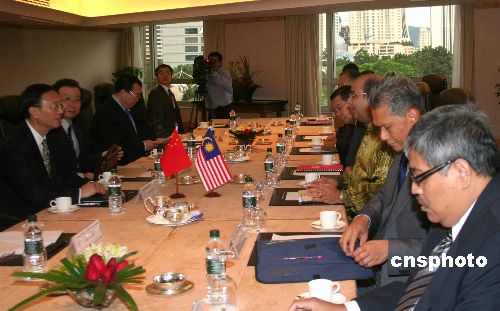 十二月八日傍晚,中國外長楊潔篪(左一)同馬來西亞外長賽義德在吉隆坡東方文華酒店舉行會談,雙方討論了雙邊關(guān)系和共同關(guān)心的國際和地區(qū)問題,就兩國今后合作達(dá)成多項共識。中新社發(fā) 蘇祥新 攝