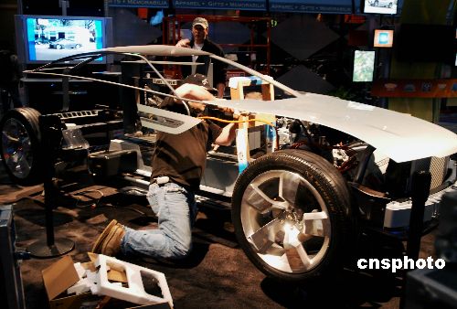 美國通用汽車一月六日在拉斯維加斯世界最大的消費電子產(chǎn)品展上,展示環(huán)保型無排放汽車模型。中新社發(fā) 賈國榮 攝
