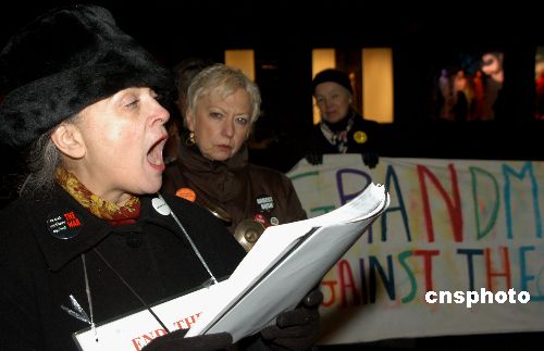 圖:美國(guó)祖母反戰(zhàn)團(tuán)集會(huì)要求政府結(jié)束伊戰(zhàn)