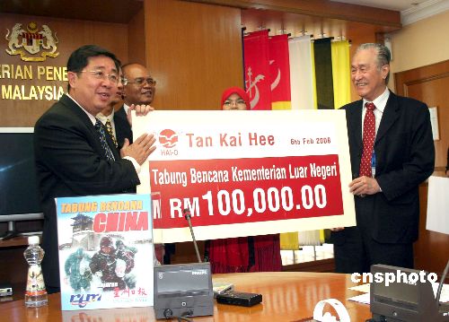 圖:大馬向中國(guó)捐款百萬(wàn)美元雪災(zāi)援助金
